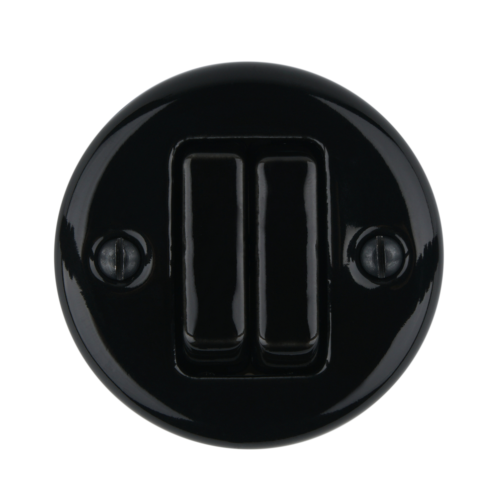 Fnd 2-gang 2-way rocker switch, surface mounting, porcelain, screw terminals, black, 10 A, 250 V, IP20.